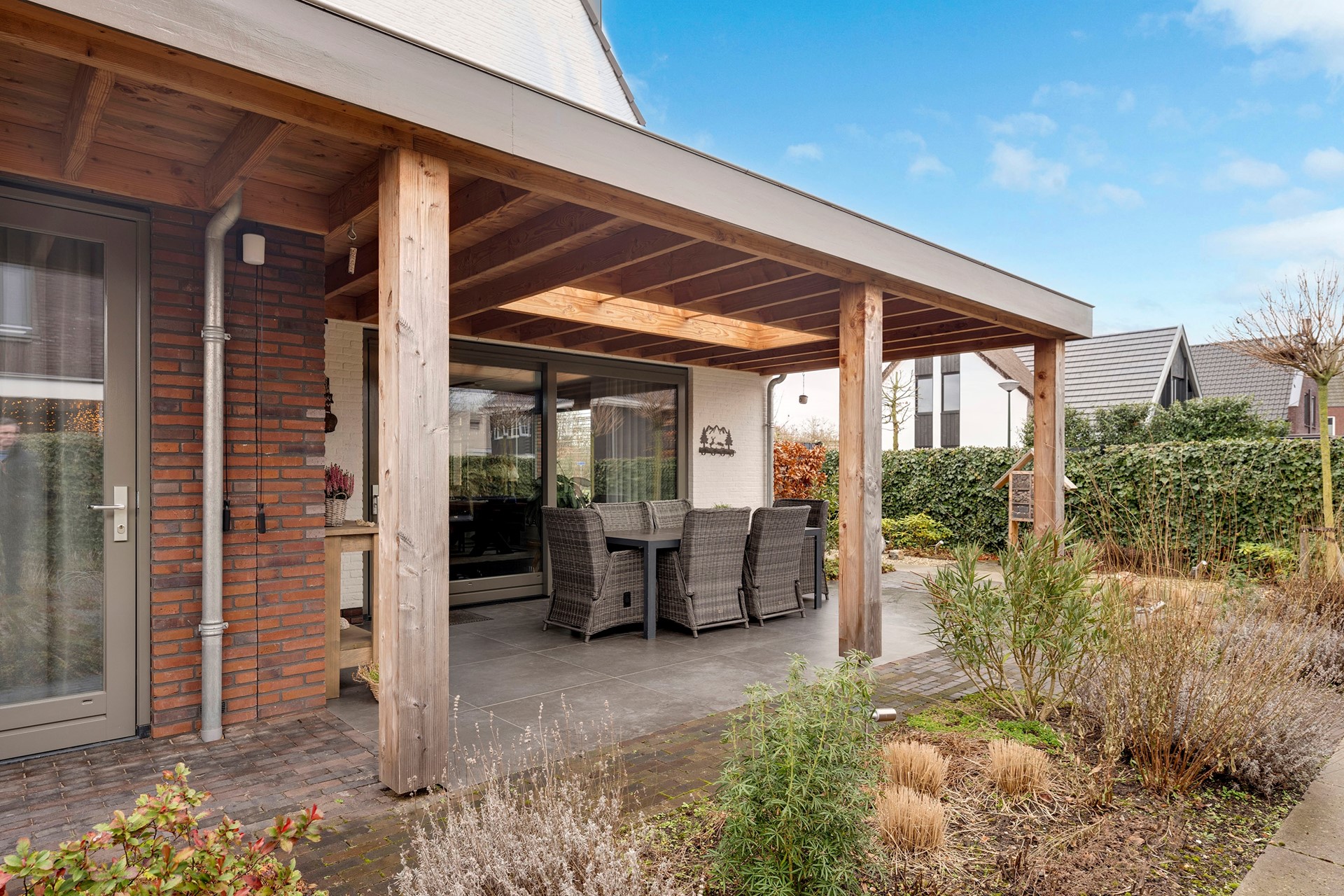Aan de achterzijde is een gezellige grote overkapping (met lichtstraat) over de gehele breedte van het huis gerealiseerd.